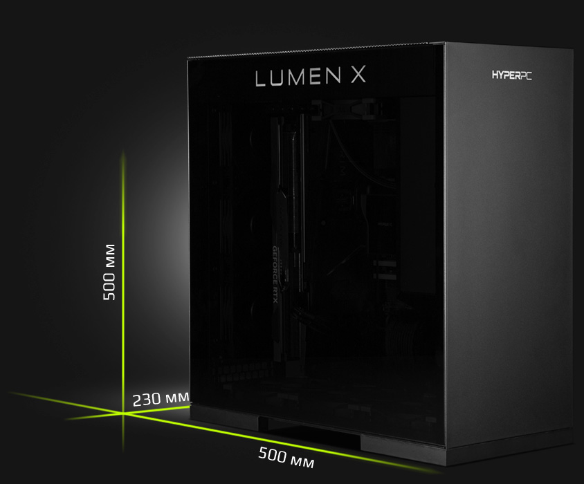 LUMEN X идеален до мелочей. Мы перевернули представление о производстве компьютеров и заставили закон конвекции работать нам на руку, повернув материнскую плату на 90°. Компьютер выполнен в стиле блекаут и полностью отражает боевой и уверенный настрой ПК и его владельца.