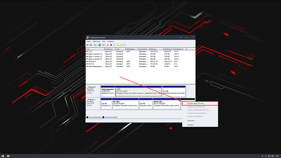 В выпавшем списке выбрать пункт «Создать простой том».